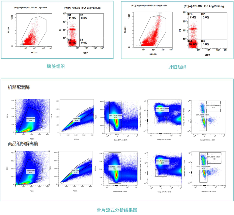 樣品通過雙向的機(jī)械切割與消化酶混合作用,通過恒溫消化,組織樣品的剪切,得到高濃度的活細(xì)胞懸液。后續(xù)經(jīng)過消化終止,過濾洗滌,必要時(shí)加以紅細(xì)胞裂解等步驟,可得到百萬到千萬的級別的活細(xì)胞,不同的組織均可以達(dá)到90%以上的細(xì)胞得率。
